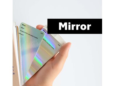 MIRROR ist ein einseitig metallischer Spiegelkarton und ab sofort in zwei weiteren Ausprägungen verfügbar: Hologram (HO) und Pillars of Light (PL).